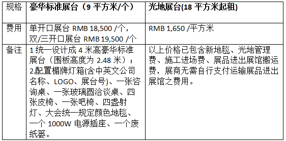 展位規(guī)格及價格