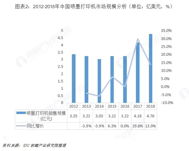 國內(nèi)噴墨打印機(jī)出貨量、市場規(guī)模逆勢上漲