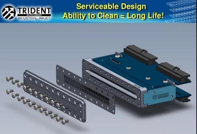 美國的TRIDENT 噴頭是噴頭里面比較獨特的一員,它的噴頭是全鋼的,可以拆開來清洗,原來主要大規(guī)模應用于噴碼標識行業(yè),后來看到工業(yè)圖象噴頭的大規(guī)模發(fā)展,也加入進來。20多年來一直居于工業(yè)打印中的領導地位,其產(chǎn)品包括: