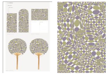 金獎作品《珠圓玉潤》的設計師利用金屬專色色板顏色使作品傳達出在時光流溢中,時節(jié)的美好與圓滿。獲獎作品的創(chuàng)作時間恰逢2019己亥豬年,設計師利用Iridesse™強大的紙張?zhí)幚砟芰?,將作品以紅包、明信片以及團扇的形式呈現(xiàn),更充分表達出作者期望生活越來越美好的寓意與期盼。