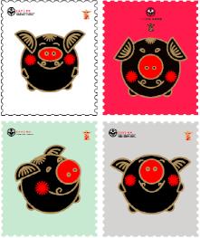 《十二時辰 金豬納福》的設計師將金屬色板中的金色運用生肖豬形象邊緣使小小郵票有更加靈動的呈現(xiàn),金色的運用也更生動凸顯了中國十二生肖的美好寓意 – 金豬納福。