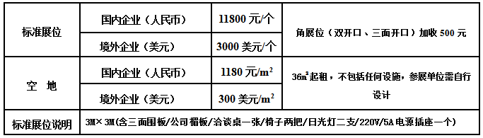 【展位規(guī)格及收費標準】