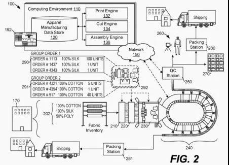2017年,美國電商巨頭亞馬遜的一項技術(shù)獲取了專利,這項技術(shù)是一套基于大數(shù)據(jù)和自動化的按需生產(chǎn)服裝系統(tǒng),借助這套系統(tǒng),亞馬遜可以實現(xiàn)智能排單和排產(chǎn),最重要的是可以實現(xiàn)以銷定產(chǎn)的按需生產(chǎn)模式,使品牌無需囤庫存便可以快速響應(yīng)市場變化。