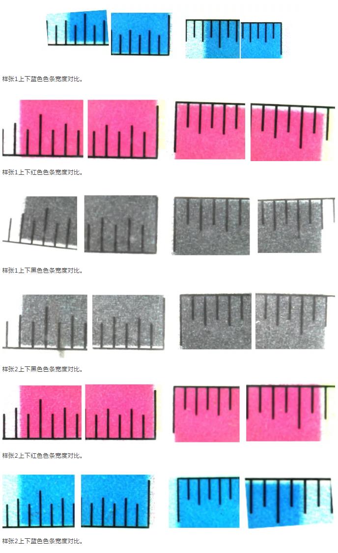 A、前后色條精準(zhǔn)度測試對比: