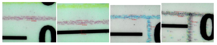 經(jīng)過以上觀察測量發(fā)現(xiàn)其線條跳動橫向為0.03~0.05mm,縱向線跳動為:0.06~0.08mm,此時線寬為0.25~0.28mm,原文件標(biāo)準(zhǔn)線寬為0.25mm。總體來說線跳動算是比較中規(guī)中矩,但是仍然有提升的空間。