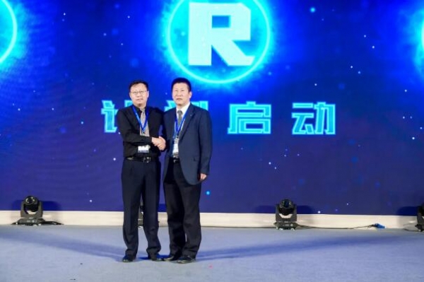 ▲柯尼卡美能達印刷系統(tǒng)統(tǒng)括部統(tǒng)括部長李剛(右)與圣德科技總經(jīng)理王剛(左)共同啟動“睿思數(shù)印R計劃”