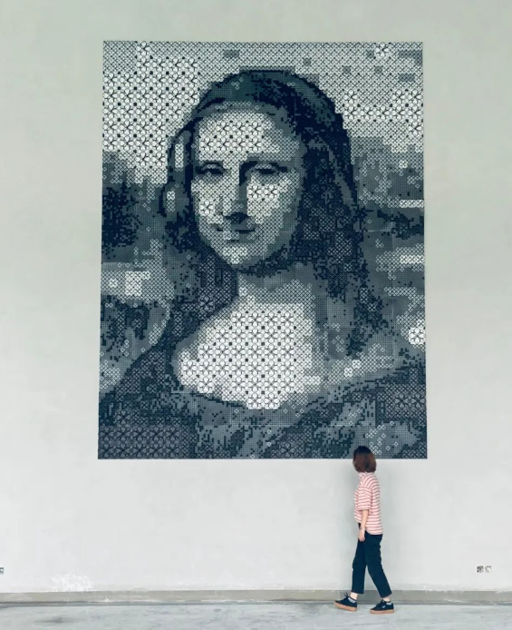 這幅為紀(jì)念達(dá)芬奇的3D打印《蒙娜麗莎》展示在上海智慧灣科創(chuàng)園四期主樓大廳中,總體尺寸為4550mm*3500mm*45mm,是目前全球最大的3D打印像素畫。