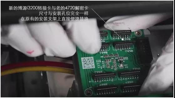 ⑤ 安裝新的博源I3200轉(zhuǎn)接卡,直接安裝于被拆除了舊的4720噴頭的支架上;