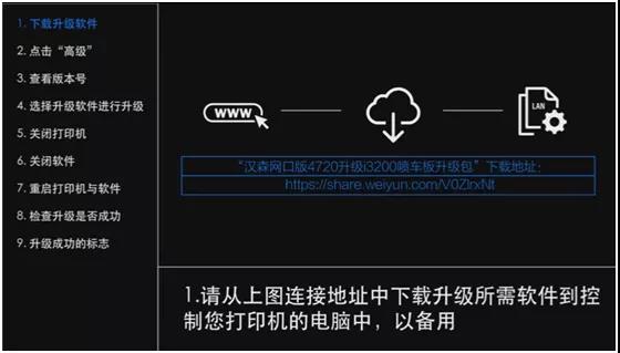 需要注意的是,漢森系統(tǒng)升級不僅是噴頭與轉(zhuǎn)接卡的更換升級,同時需要進行軟件升級,故需要按以下提示先到網(wǎng)絡(luò)云端下載升級軟件。