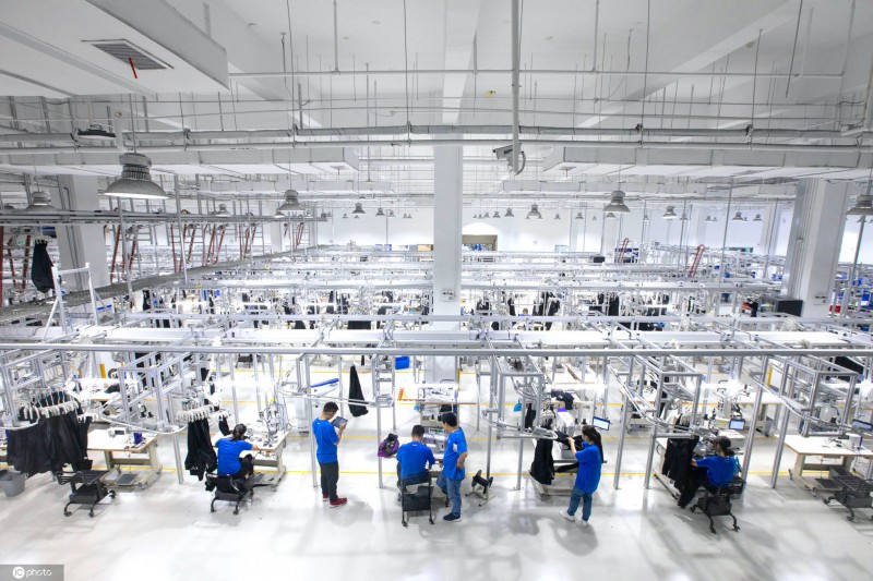 (“犀牛工廠”是座“數(shù)字化工廠”, 結合云計算、物聯(lián)網、人工智能,運轉效率可達行業(yè)平均水平的4倍,實現(xiàn)100件起訂,7天交貨。)