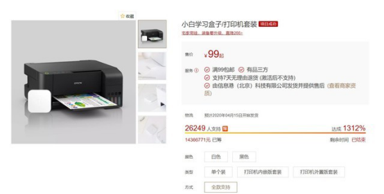 相比早前“直接發(fā)布新品”的模式,惠普、米系以及愛普生等,都喜歡以“眾籌”作為觸點,借以探知消費者對新品的歡迎程度以及感受。以及小白學(xué)習(xí)盒子為代表的產(chǎn)品,就采用這一方式,而且多次成功眾籌證明小白學(xué)習(xí)盒子是成功的。那這是一種什么樣的產(chǎn)品呢?
