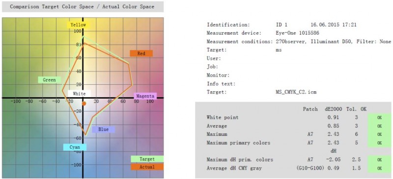 還有一些國際上認可的顯示器認證軟件可以認證顯示器是不是可以做到紡織品“所見即所得”,提供一個數(shù)據(jù)化的結(jié)果更公開公正排除人的個體因素。圖六就是一個軟件做出的評估。