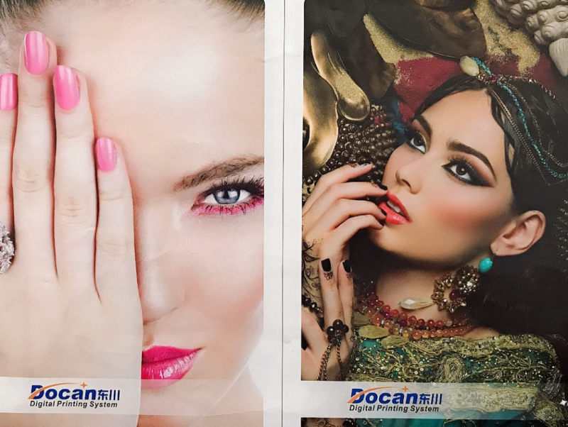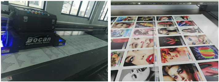 在Docan-H1000 UV平板設(shè)備及愛普生I3200-U1打印頭測(cè)試中 ,因拍攝逆光影響,實(shí)際紙質(zhì)樣品效果更漂亮。