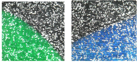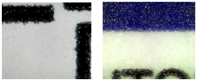 我們在放大500倍顯示下,雙色重疊整齊,沒有彈墨現(xiàn)象。