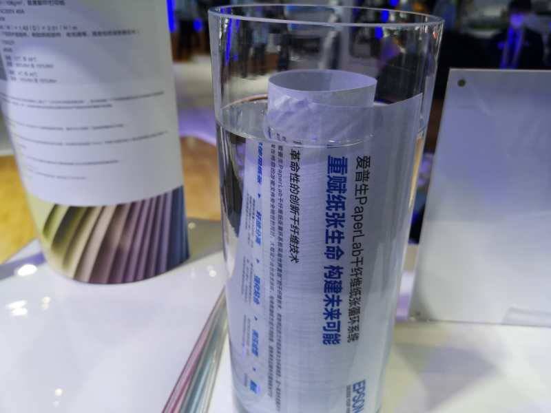 “這是全球首創(chuàng)的PaperLab無(wú)水再生紙系統(tǒng)。在再生新紙的過(guò)程中,需要粉碎廢紙。這里有我們一項(xiàng)技術(shù)亮點(diǎn),即使全球最前沿的碎紙還原技術(shù),也無(wú)法還原這臺(tái)機(jī)器碎過(guò)的紙張。”據(jù)愛(ài)普森展臺(tái)工作人員介紹,僅僅使用一臺(tái)再生系統(tǒng)一年時(shí)間,就可以節(jié)約7500噸以上的寶貴水資源,少砍伐84棵大樹(shù),減少3.8噸的二氧化碳的排放。