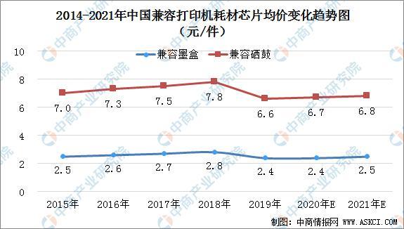 隨著兼容打印機耗材需求的不斷增加,2015年至2018年兼容打印機耗材芯片的平均價格也在逐漸增加。兼容硒鼓芯片的平均價格和兼容墨盒芯片的平均價格從每件7.0元和2.5元增至每件7.8元及2.8元,2015年至2018年複合年增長率分別為3.8%和3.7%。2019年,受中美貿(mào)易戰(zhàn)、新產(chǎn)品缺乏和產(chǎn)業(yè)整合的影響,兼容硒鼓芯片和兼容墨盒芯片的平均價格在2019年分別下降了14.8%和13.6%。在可預(yù)見的將來,隨著兼容打印機耗材需求的增長,兼容打印機耗材芯片的平均價格有望增長。預(yù)期2021年,兼容硒鼓芯片的平均價格和兼容墨盒的平均價格分別為每件6.8元和2.5元。