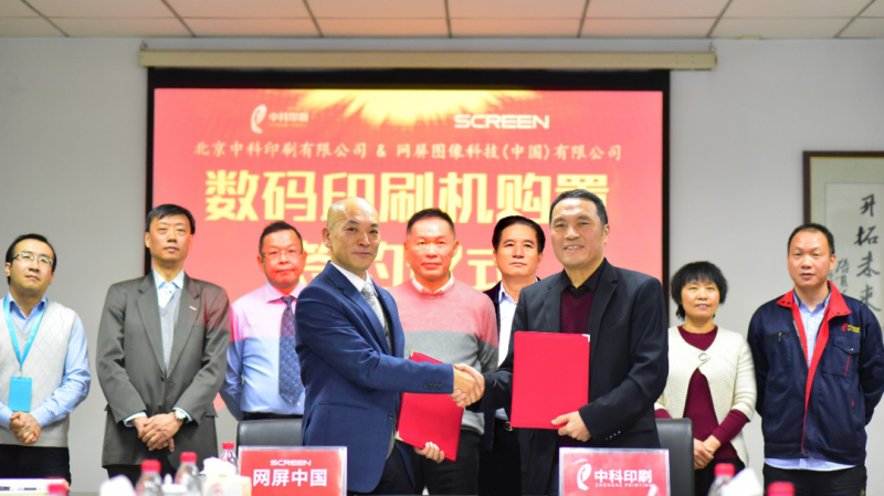 2020年12月16日,北京中科印刷有限公司(原中國科學(xué)院印刷廠,以下簡稱中科)與網(wǎng)屏(中國)有限公司、北京極??萍加邢薰驹诒本┡e行中科POD項目簽約儀式。中科董事長沈幸華、總經(jīng)理曾新橋、黨委副書記王煥菊、生產(chǎn)管理中心副總經(jīng)理駱冠好、網(wǎng)屏公司半澤賢臣董事長、亞太銷售總監(jiān)陳建暉、噴墨輪轉(zhuǎn)總經(jīng)理葉健、極??萍伎偨?jīng)理賓建國等出席簽約儀式。