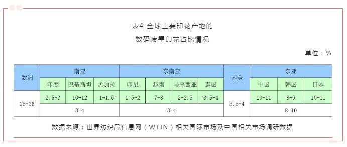 以中國(guó)、韓國(guó)和日本為代表的東亞地區(qū),數(shù)碼噴墨印花產(chǎn)量占比約為8%-10%;