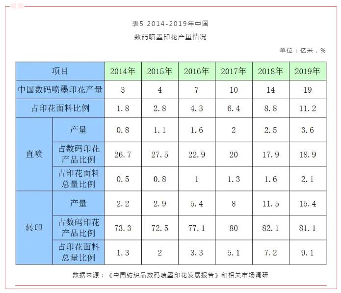 預(yù)計(jì)到2025年,數(shù)碼轉(zhuǎn)移印花產(chǎn)量將達(dá)到27億米,年均增長(zhǎng)10%左右;數(shù)碼直噴印花產(chǎn)量達(dá)到約20億米,年均增長(zhǎng)33%左右。