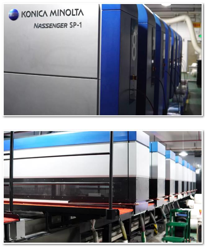 在時尚創(chuàng)意之都深圳,同益新中控實業(yè)有限公司的設備規(guī)模與生產(chǎn)速度絕對是讓大部分印花人眼饞的:5臺柯尼卡120,3臺柯尼卡n10,1臺柯尼卡pro1000以及1臺價值2300萬元,最高配置的柯尼卡NASSENGER SP-1 Single-Pass打印機。在這樣的豪華配置之下,同益新的日產(chǎn)量能夠輕松做到10萬米以上,其中僅是Single-Pass的單機產(chǎn)量就占到了5萬米以上。
