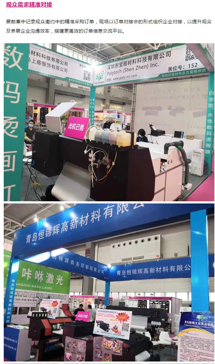綜合評(píng)定展會(huì)規(guī)模、品牌影響力以及專業(yè)觀眾質(zhì)量等多方面,青島國(guó)際紡織品印花工業(yè)展已成為北方紡織品印花市場(chǎng)的標(biāo)桿展會(huì)。展會(huì)為展商及觀眾構(gòu)建專業(yè)的訂單采購(gòu)對(duì)接平臺(tái),為印花廠、服裝廠、貿(mào)易公司、品牌訂單企業(yè)、設(shè)計(jì)師等行業(yè)人士提供印花設(shè)備、印花材料、印花加工等多個(gè)品類展品,推廣行業(yè)信息交流及資源融合。