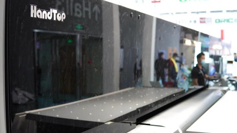 根據(jù)介紹,這款全新高速打板機(jī)名為HT2500Robo,相比前代產(chǎn)品成本更低,工序更少,效率更是提升整整1倍,是以長(zhǎng)時(shí)間工業(yè)生產(chǎn)作為目標(biāo)進(jìn)行研發(fā)設(shè)計(jì)的打印利器。展會(huì)現(xiàn)場(chǎng),我們可以看到整臺(tái)機(jī)器做工精細(xì)扎實(shí),打印非常平穩(wěn)。由于已經(jīng)與京瓷進(jìn)行了長(zhǎng)時(shí)間的合作,漢拓對(duì)京瓷工業(yè)噴頭的運(yùn)用顯得非常純熟,打印精度最高達(dá)到3600dpi,畫面細(xì)膩逼真。