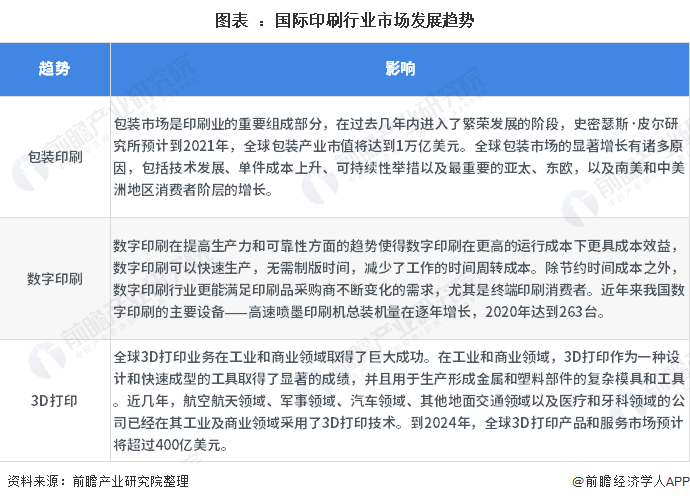 縱觀2020年全球印刷業(yè),挑戰(zhàn)與機(jī)遇并存。在數(shù)字化、智能化、大數(shù)據(jù)等信息技術(shù)的推動(dòng)下,印刷業(yè)不斷推陳出新,未來(lái)印刷行業(yè)將在包裝印刷市場(chǎng)、數(shù)字印刷市場(chǎng)以及3D打印市場(chǎng)有較快的發(fā)展。