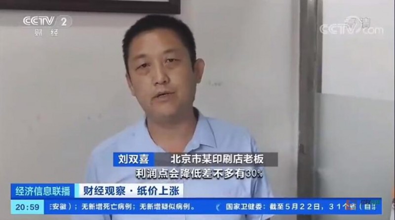 劉雙喜表示,紙價連續(xù)上漲,印刷價格卻保持不變,這讓他們的利潤越來越低,現(xiàn)在利潤點已經(jīng)降低了差不多30%。并表示,如果價格再連續(xù)上漲的話,只能被迫調(diào)整價格。