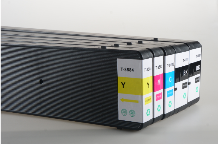 新品代用墨盒Epson T8581-T8584/T8871-T8874容量為為黑色859ML,彩色459ML,采用優(yōu)質(zhì)高清色彩穩(wěn)定性顏料墨水,無需補充墨水即可打印100K黑色/50K 彩色頁面,打印/復(fù)印速度可達黑色ISO 75ppm,彩色ISO100ppm。