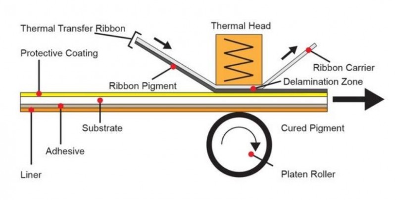 熱轉(zhuǎn)印打印技術(shù)的原理是通過熱和壓力將油墨從碳帶介質(zhì)轉(zhuǎn)印到紙或薄膜的過程,當(dāng)介質(zhì)通過打印機(jī)的打印頭和壓軸時,將油墨轉(zhuǎn)印到標(biāo)簽上。由于該技術(shù)噪音比針式打印技術(shù)要低,字跡保存時間比熱敏打印技術(shù)要持久,所以成為傳真機(jī)使用頻率最高的技術(shù)。