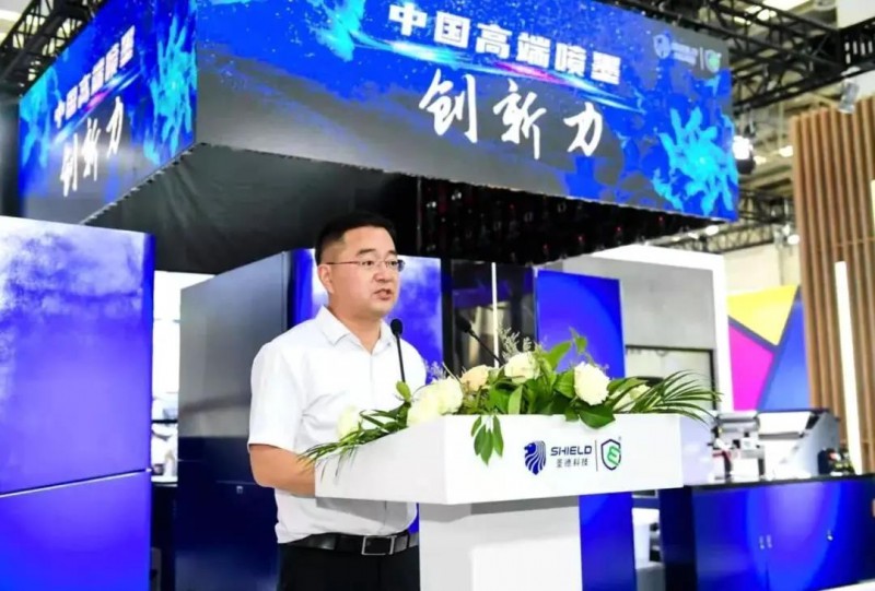 中國印刷及設(shè)備器材工業(yè)協(xié)會副理事長楊民強為發(fā)布會致辭,他號召更多的創(chuàng)新力量緊跟世界發(fā)展潮流,對標(biāo)一流技術(shù),而這款帶有國產(chǎn)噴頭的數(shù)字噴墨印刷機,就是銳發(fā)助力圣德科技作為國產(chǎn)創(chuàng)新力量最有力的發(fā)聲。
