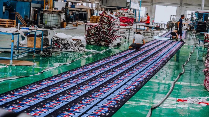 走進(jìn)青島美高林地毯公司生產(chǎn)車間,現(xiàn)代化的免水洗高清噴墨流水生產(chǎn)線正在高效運(yùn)轉(zhuǎn),車間內(nèi)呈現(xiàn)出一派蓬勃發(fā)展的忙碌狀態(tài)。據(jù)車間負(fù)責(zé)人介紹:“公司以尼龍、滌綸塊毯生產(chǎn)為主,80%的地毯出口國外,歐美商超等渠道均有,工廠內(nèi)正在生產(chǎn)一個26萬平方米的尼龍家用塊毯大訂單,選用數(shù)碼印花機(jī)生產(chǎn),3個月交貨期,預(yù)計7月中旬發(fā)往美國。”