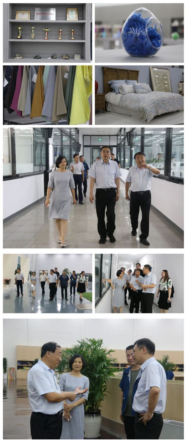愉悅家紡黨委書記、董事長劉曰興,青島大學教授、山東黃河三角洲紡織科技研究院院長房寬峻,愉悅家紡副董事長、科協(xié)理事長張國清,科協(xié)副理事長、研創(chuàng)中心主任張磊,科協(xié)秘書長高洪國,研創(chuàng)中心副主任、數(shù)碼印花車間主任孫付運,陪同考察團一行參觀了公司的麻纖維加工生產(chǎn)線、數(shù)碼印花設備、愉悅家紡居家世博館、如悅醫(yī)療及各類先進的檢測實驗室。