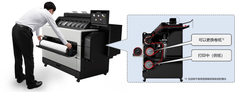 imagePROGRAF TZ-5300/5300 MFP首次搭載了“卷紙熱插拔更換”技術