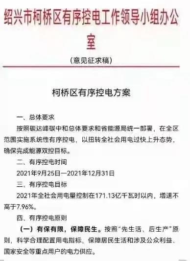 按照碳達(dá)峰碳中和要求和省能源局統(tǒng)一部署,在全區(qū)范圍內(nèi)實(shí)施系統(tǒng)性有序控電,以扭轉(zhuǎn)全社會用電過快上升態(tài)勢,確保完成能源雙控目標(biāo)!