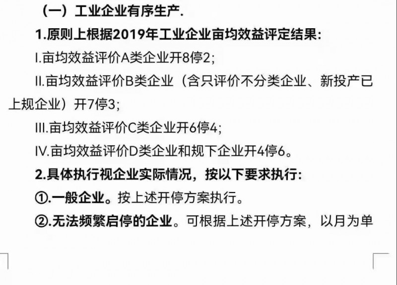 而園區(qū)內(nèi)印染及相關(guān)企業(yè),限產(chǎn)停產(chǎn)不再“一刀切”,根據(jù)意見征求稿。或?qū)⒏鶕?jù)2019年工業(yè)企業(yè)畝均效益評定結(jié)果等級進(jìn)行限產(chǎn)停產(chǎn)(詳細(xì)規(guī)則點(diǎn)擊下面圖片)。最嚴(yán)為D類企業(yè)和規(guī)下企業(yè)開4停6。