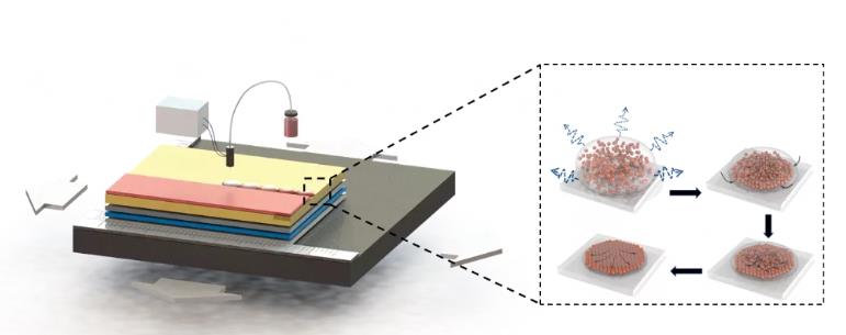 圖1. 噴墨打印工藝及量子點(diǎn)成膜示意圖