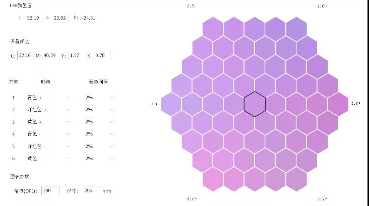 對于傳統(tǒng)的填色描稿崗位來說,想要快速精準地實現(xiàn)樣品顏色的復(fù)現(xiàn)不光需要調(diào)色經(jīng)驗極其豐富的技術(shù)人才,還要求調(diào)色師傅對于印花廠的設(shè)備環(huán)境十分熟悉,否則就會出現(xiàn)需要長時間重復(fù)調(diào)整的問題,導(dǎo)致大量寶貴時間浪費。而森彩數(shù)字印刷推出的追色系統(tǒng)在經(jīng)過取色軟件的自動取色后會自動在電腦上計算出一個與樣品極為接近的顏色,并以此為并以此為圓心,自動生成蜂巢六邊形色域。通過這樣的步驟,調(diào)色師只需要根據(jù)經(jīng)驗挑選與原稿接近的顏色就能大幅度地將顏色范圍縮小,迅速接近樣色,大大地提升了調(diào)色的工作效率。