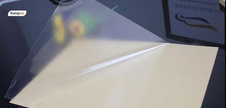 和PP膠片的區(qū)別在于其有自帶的膠面,客戶撕開后面薄膜后就貼到背板上。