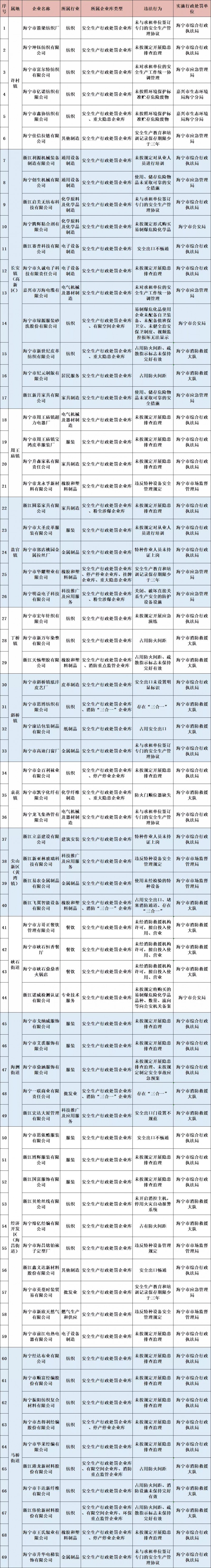 海寧市安全生產(chǎn)“三大”行動工作專班執(zhí)法辦案組將定期分批曝光企業(yè)行政處罰,強(qiáng)化社會監(jiān)督。