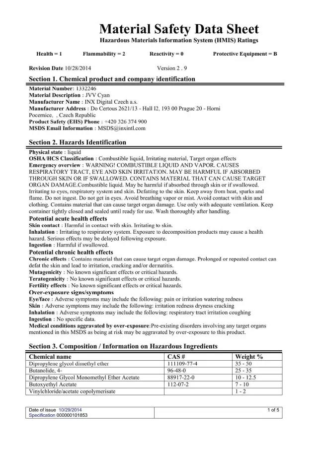 首先,溶劑構(gòu)成了墨水的大部分重量,并且是有機(jī)的,這意味著它們是易燃的,當(dāng)與空氣混合時(shí)可能會爆炸(取決于墨水的閃點(diǎn))。這些溶劑可歸為揮發(fā)性有機(jī)化合物(VOC),排放到環(huán)境中會造成臭氧污染。如果人體大量吸入或以液體形式排入環(huán)境,也會對人體和魚類造成毒性。