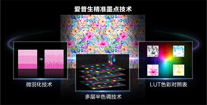 無論是個性化定制還是大批量生產(chǎn),輸出品質(zhì)一直是影響客戶滿意度的關(guān)鍵環(huán)節(jié)。作為在全球噴墨創(chuàng)新領(lǐng)域領(lǐng)先的科技企業(yè),愛普生集合多年來在圖像處理技術(shù)方面努力研發(fā)的結(jié)果,在SC-F 10080H上裝配了升級版愛普生精準墨點技術(shù)。通過對升級版的LUT色彩對照表、新的多層半色調(diào)技術(shù)以及微羽化技術(shù)的整合,有效降低了打印輸出畫面的顆粒感及打印條紋,而且使過渡區(qū)域更加平滑,從而實現(xiàn)高品質(zhì)的打印輸出。
