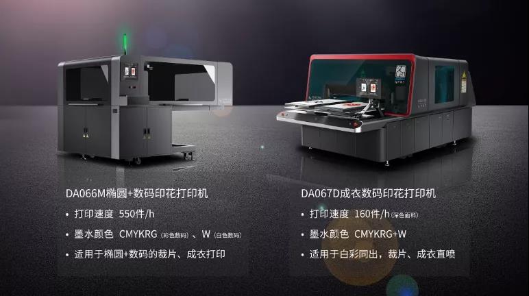 DA066M橢圓+數(shù)碼印花打印機的多機位組合,多機位自由組合搭配,滿足多工位流水線生產(chǎn)需求。不同工藝顏色圖案可同時生產(chǎn),訂單自由組合,可隨時插入新訂單。