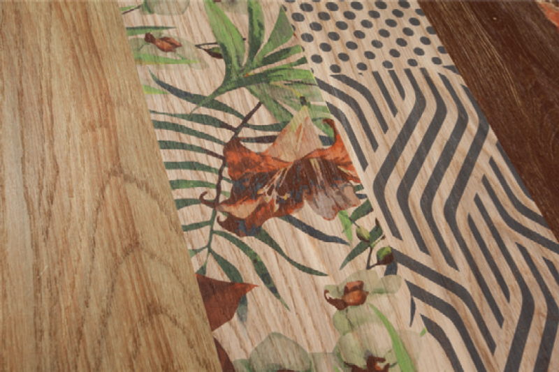 數(shù)字印刷是木板裝飾的新選擇。EFI Cubik single-pass噴墨打印機(jī)可以直接對(duì)實(shí)木板材進(jìn)行打印,制作出逼真的木紋、漸變色、高精度圖像和色彩,采用礦物質(zhì)墨水,可與木材融為一體,耐候防曬,讓天然地板具有溫暖質(zhì)感。EFI Mineral 專用的墨水和數(shù)字染色工藝,適用于硬木地板、鑲木地板涂飾、以及膠合板、刨花板和其他工程木板。