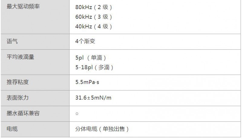 5pl 二進(jìn)制驅(qū)動(dòng)器的噴墨頻率為 80kHz,5/10 / 18pl 多滴驅(qū)動(dòng)器的噴墨頻率為 40kHz。通過(guò) 600dpi 多點(diǎn)驅(qū)動(dòng),我們以 100m/min 或更高的線速度提供高生產(chǎn)率。