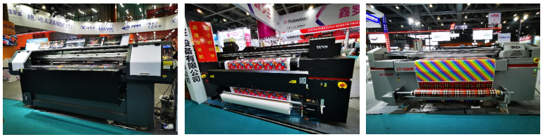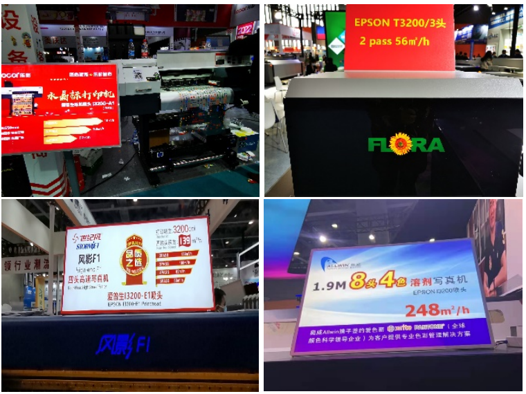 I3200-E1在戶外溶劑和弱溶劑上普遍使用,色彩表現(xiàn)多年來為行業(yè)人所選擇與信賴。I3200-A1在戶內(nèi)寫真、旗幟、燈箱直噴方案上表現(xiàn)非常出色;像雅色蘭、彩旗王、龍印、吉輝、奧德利等品牌都有搭載了4-8個(gè)多頭I3200-A1的直噴設(shè)備。展示的方案特別具有視覺沖擊力,現(xiàn)場圍觀絡(luò)繹不絕。