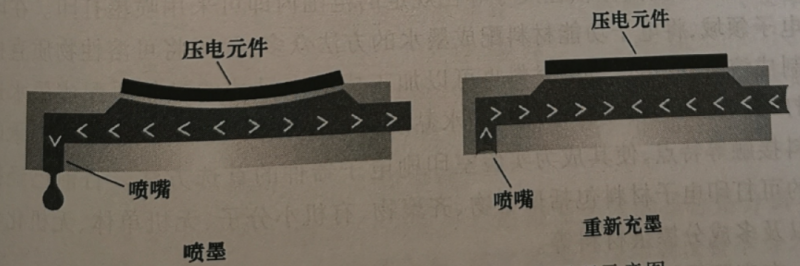 噴墨式3D打印機(jī)主要的工作原理是通過(guò)對(duì)壓電材料施加一定電壓,利用壓電材料在電場(chǎng)下所產(chǎn)生的形變,使墨腔體積發(fā)生變化并擠出墨滴,并使其從噴嘴系統(tǒng)中射出。(如下圖所示)