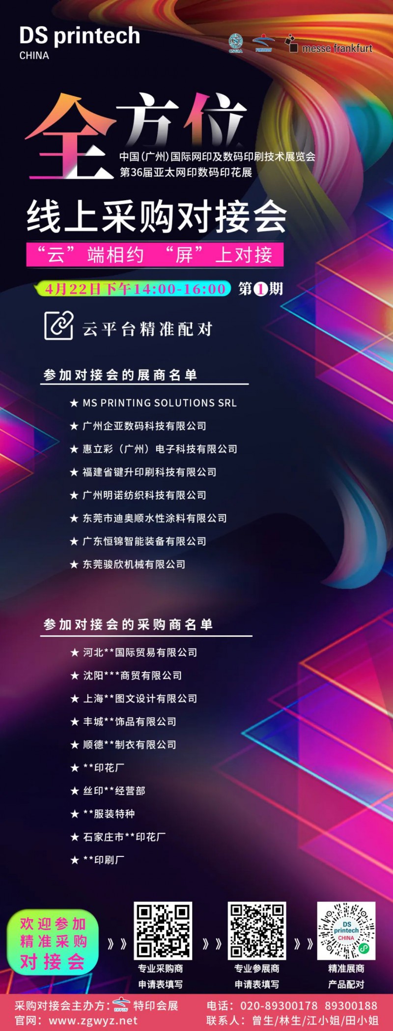 4月22日,首場亞太網(wǎng)印數(shù)碼印花展線上采購對接會(huì)由特印會(huì)展主辦,圓滿成功,參與的展商與采購商給與活動(dòng)肯定的評價(jià)!