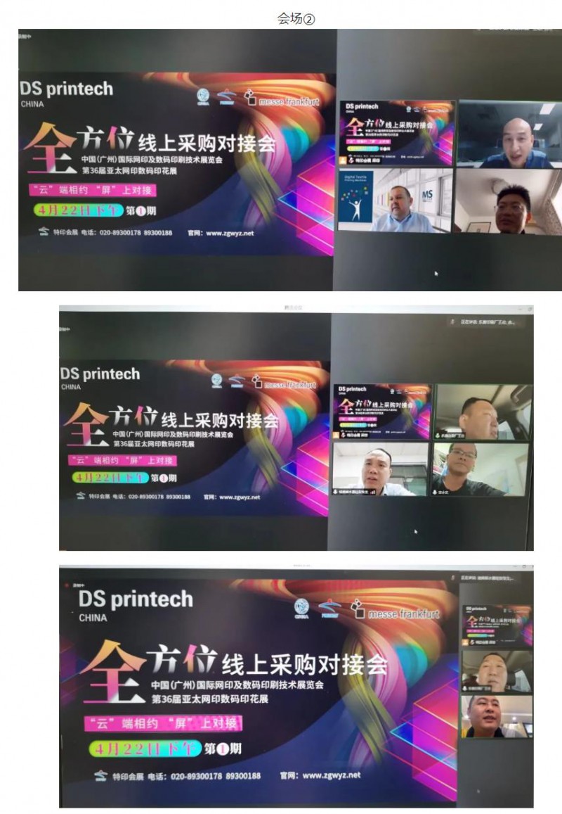 本次對接會(huì)吸引了上海、河北、沈陽、廣州、石家莊等地的專業(yè)買家參加,直接與知名展商:MS PRINTING SOLUTIONS SRL、廣州企亞數(shù)碼科技有限公司、惠立彩(廣州)電子科技有限公司、福建省鍵升印刷科技有限公司、東莞市迪奧順?biāo)酝苛嫌邢薰?、東莞駿欣機(jī)械有限公司、廣東恒錦智能裝備有限公司、廣州明諾紡織科技有限公司進(jìn)行線上面對面溝通對接,活動(dòng)效果超預(yù)期。