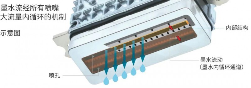 墨水循環(huán)帶走在墨腔內(nèi)氣泡和雜質(zhì),保證連續(xù)打印的穩(wěn)定性